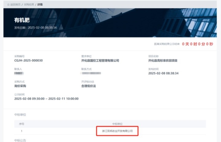 喜讯!黑鹰集团中标开化县高标准农田有机肥采购项目